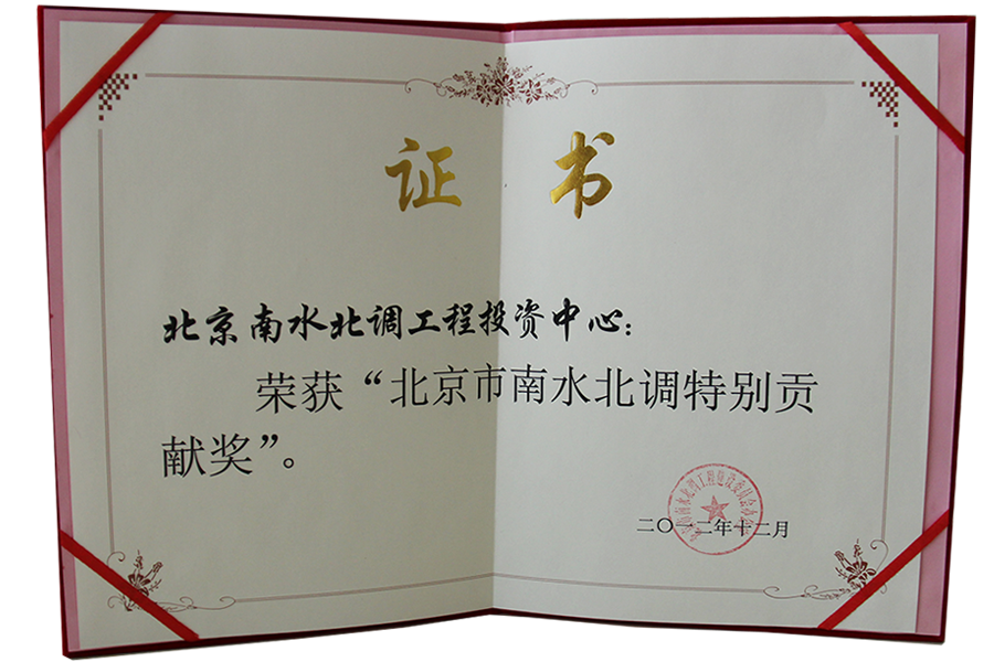 北京市南水北调特别贡献奖